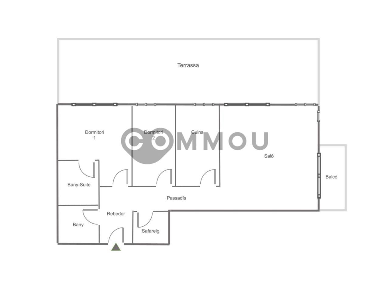 Les dues habitacions són dobles, exteriors i amb sortida a la terrassa, equipades amb armaris encastats per guanyar espai i comoditat. La suite principal disposa de bany privat, i el pis compta amb un segon bany complet.